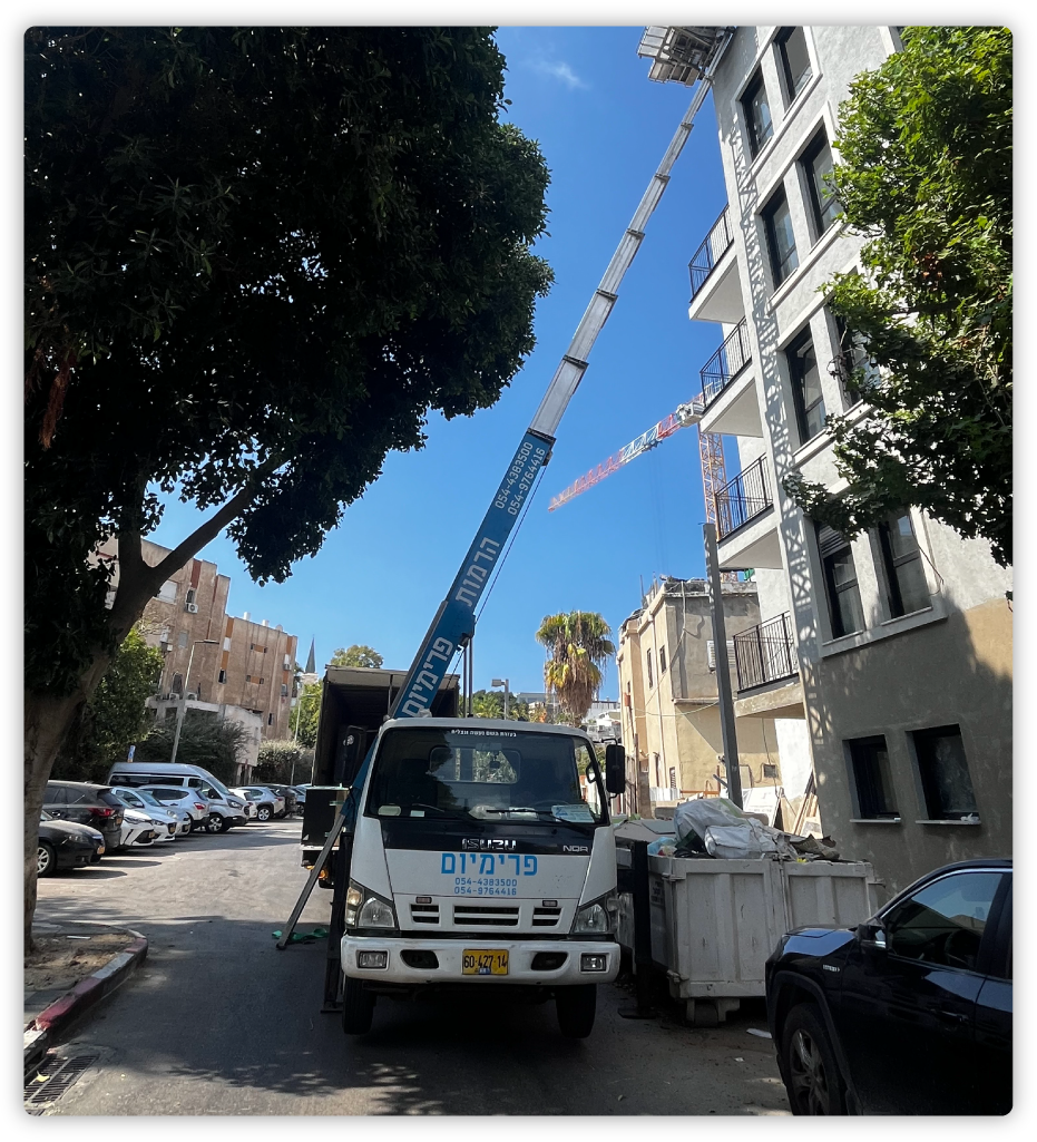 פרימיום הרמות מספקת שירותי מנוף סולם מקצועיים להרמה והורדה של משאות עד קומה אחת עשרה, עם זמינות מלאה בכל אזור המרכז. אנחנו מתמחים בהרמות מדויקות ובטוחות של רהיטים, מטבחים, תכולות דירה, חומרי בניין ועוד – לכל מי שצריך פתרון מהיר, יעיל ומקצועי.עם ניסיון של שנים בתחום, צוות מיומן וביטוח מלא בכל עבודה – אנחנו דואגים שתהיה לך הרמה שקטה ובטוחה, בלי סחיבות מיותרות, בלי סיכונים ובלי נזקים.